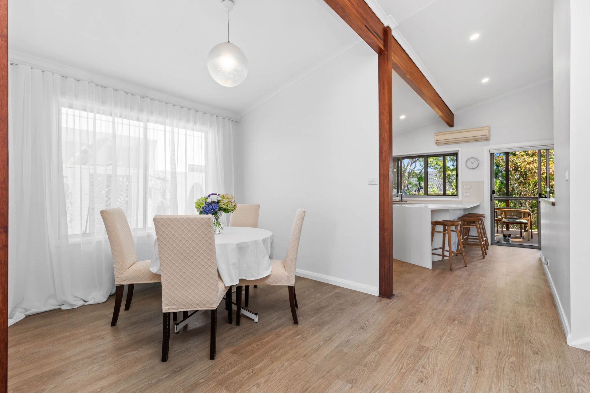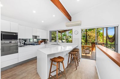 - Renovated and practical kitchen with gas cooking, dishwasher, double sink and servery window overlooking the alfresco deck