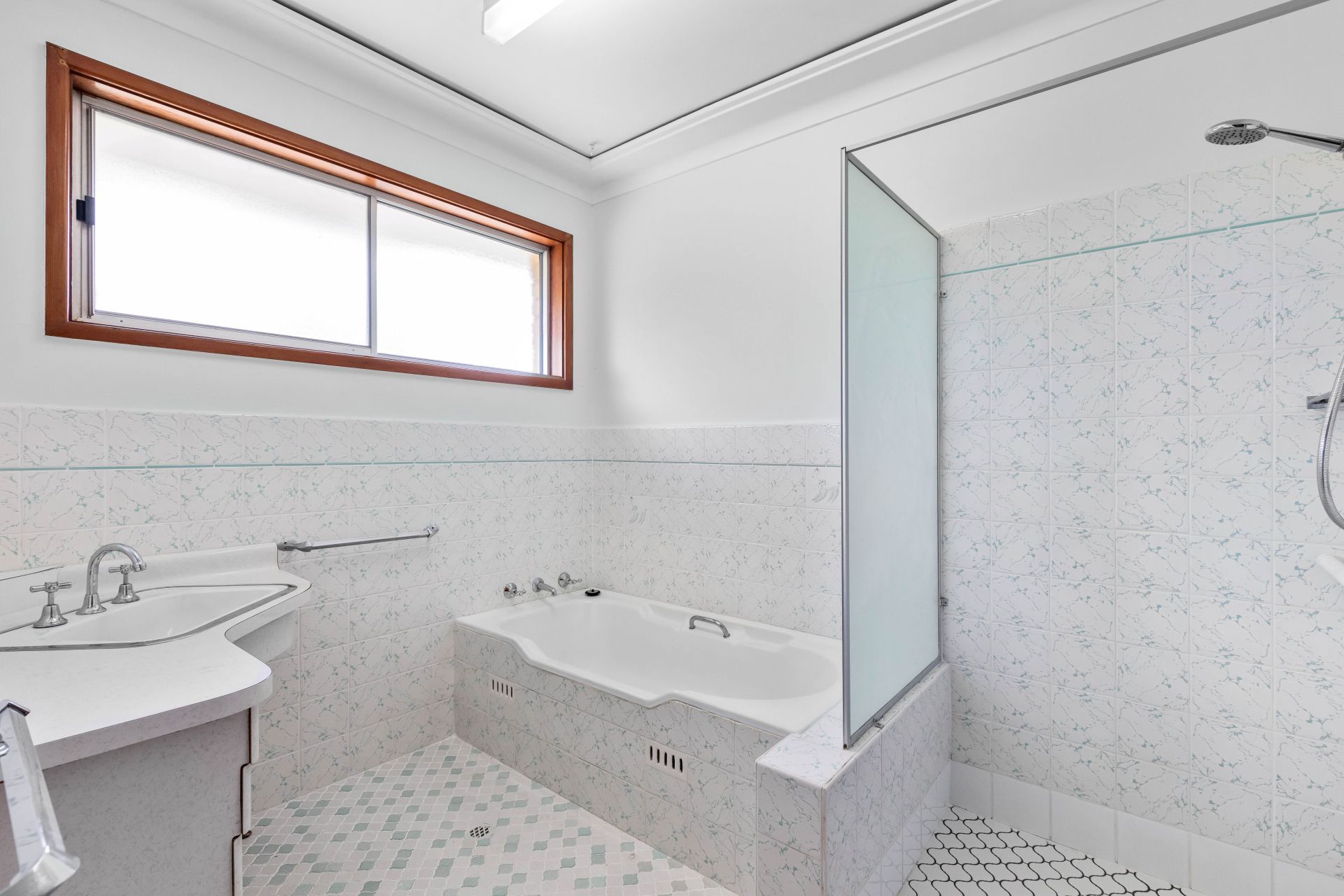 - Neat and practical bathroom with bath, shower and a separate w/c