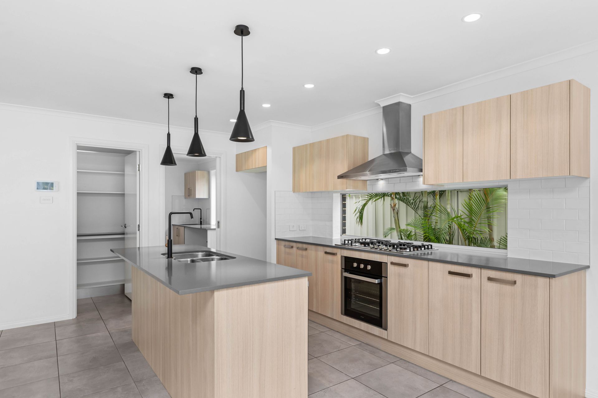- Generous kitchen complete with island bench, gas cooking and a sizable walk in pantry with ample storage and bench space