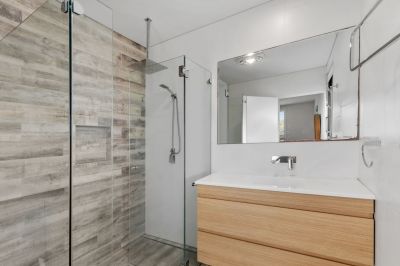 - Modern kitchen perfect for entertaining with stone waterfall benchtop, dishwasher and electric cooking
