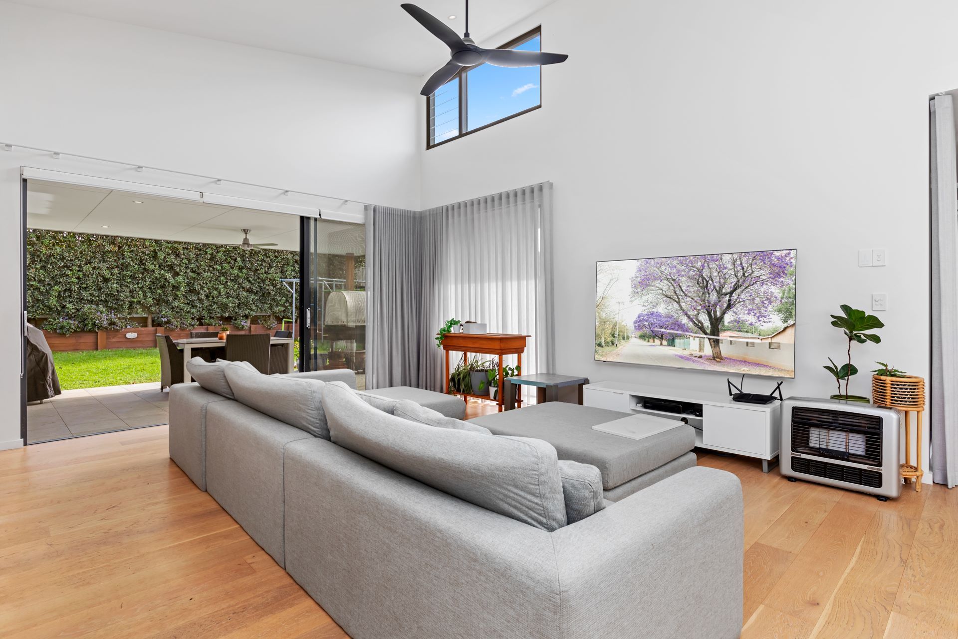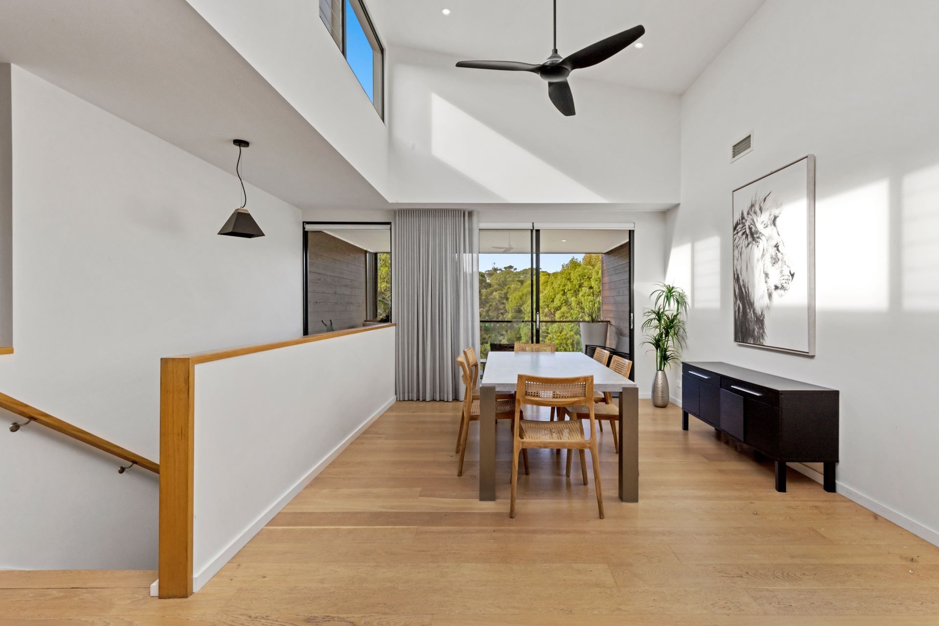 - Dining zone opens onto a large front balcony with leafy views across the road to the horse paddock