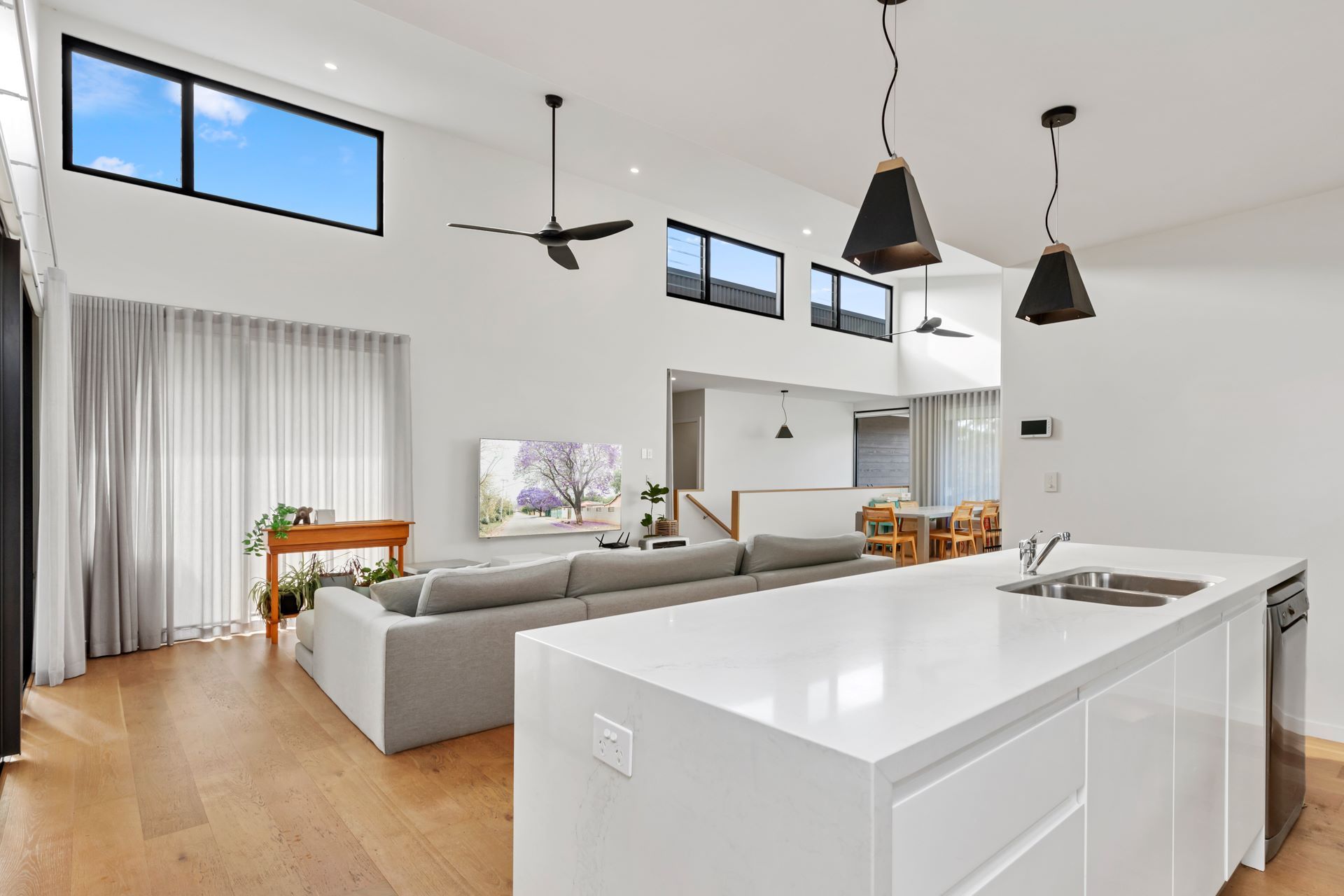 - Gorgeous timber staircase takes you up to an impressive open plan living design full of light