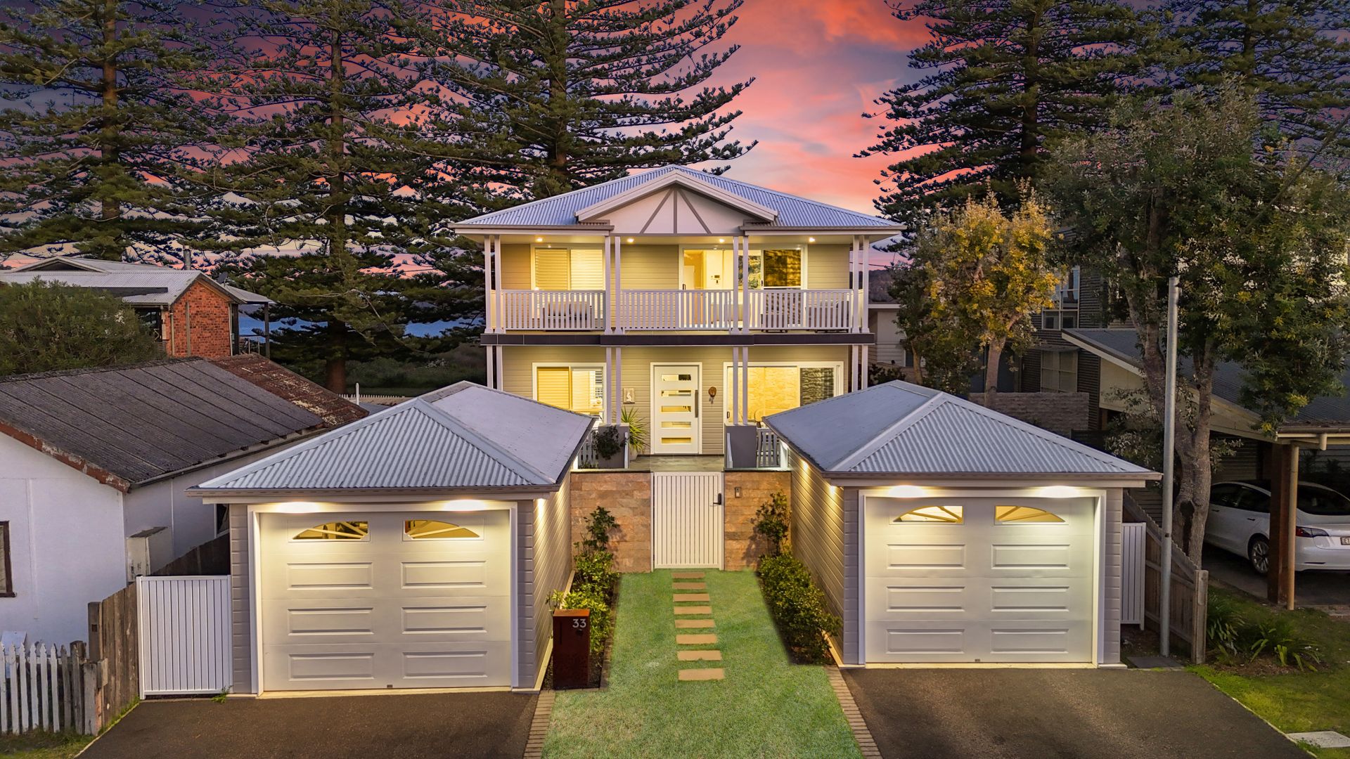 Set on a generous beachfront parcel, the property is complemented by two large, separate garages, providing excellent storage, secure parking, and strong street presence.
