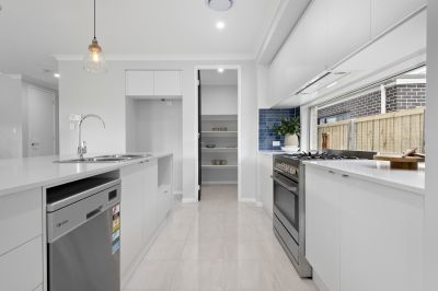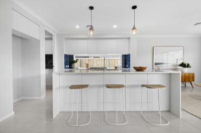 -Designer Kitchen: Featuring soft-close cabinetry, 20mm Caesarstone waterfall benchtops, a large island with breakfast bar, Technika appliances, contemporary splashbacks, and a walk-in butler's pantry.