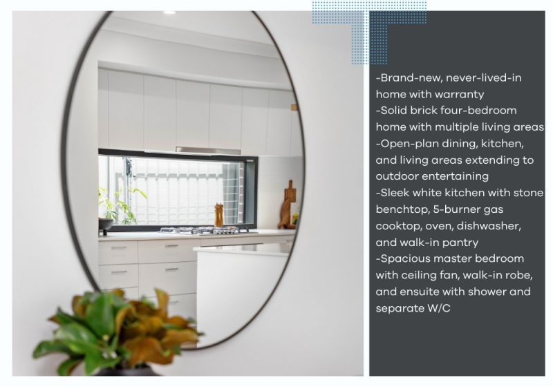 Step into effortless modern living with this brand-new home at 5 Kentwood Street, Thornton. Thoughtfully designed for comfort and style, this pristine residence boasts spacious, open-plan living areas filled with natural light. The contemporary kitchen, complete with sleek finishes and state-of-the-art appliances, flows seamlessly into the dining and lounge spaces, creating the perfect setting for everyday living and entertaining. Large sliding doors open to a private alfresco area, inviting you to enjoy outdoor dining or unwind in your own peaceful retreat.