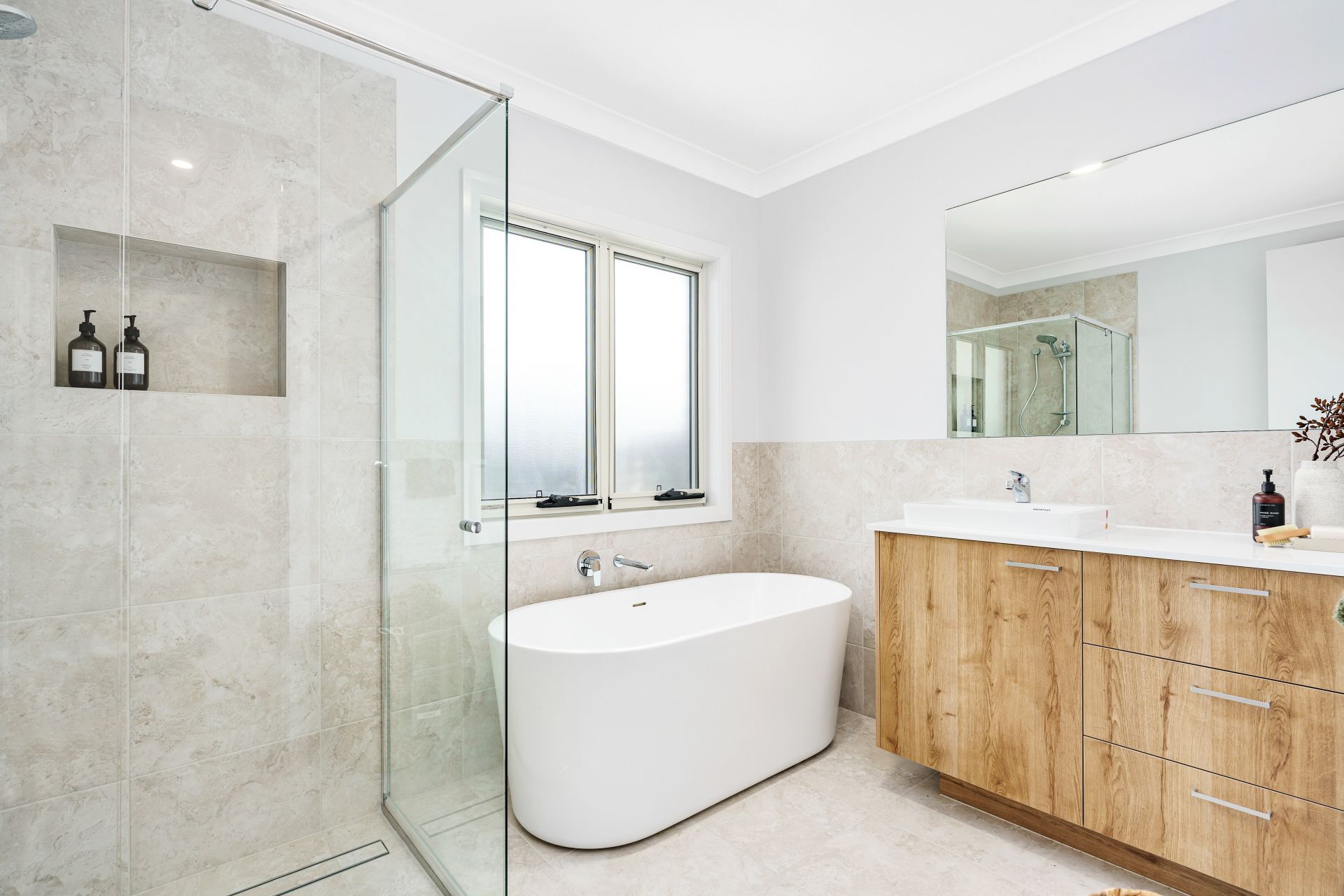 - Floor-to-ceiling tiling in showers, with quality ceramic tiles throughout