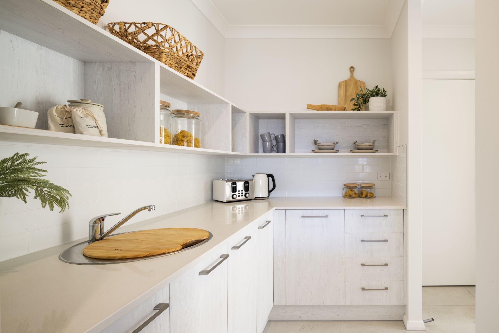 - 20mm Caesarstone Mineral™ Silica Free Stone benchtops with pencil round edge
