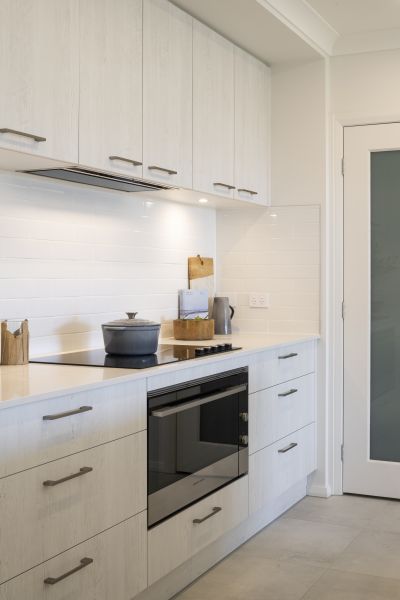 - Polytec laminate cabinetry with soft-close drawers and Hettich handles