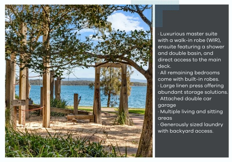 · Luxurious master suite with a walk-in robe (WIR), ensuite featuring a shower and double basin, and direct access to the main deck.