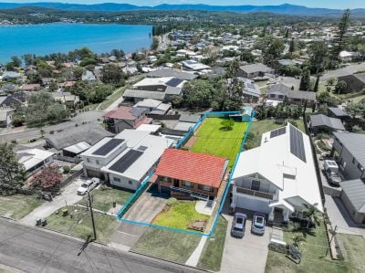 Large windows frame the ever-changing lake outlook, creating a strong connection to the water throughout the dining and kitchen spaces. The expansive backyard provides abundant room for outdoor living, gardens, or future enhancement, while the home's elevated setting ensures both privacy and outlook are retained. Positioned in a tightly held enclave just moments from the lake foreshore, village shops, and Warners Bay amenities, this is an opportunity offering lifestyle, land, and long-term potential in equal measure.
