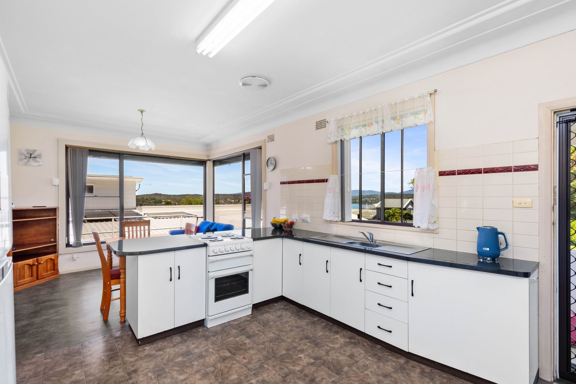 -Large windows framing Lake Macquarie