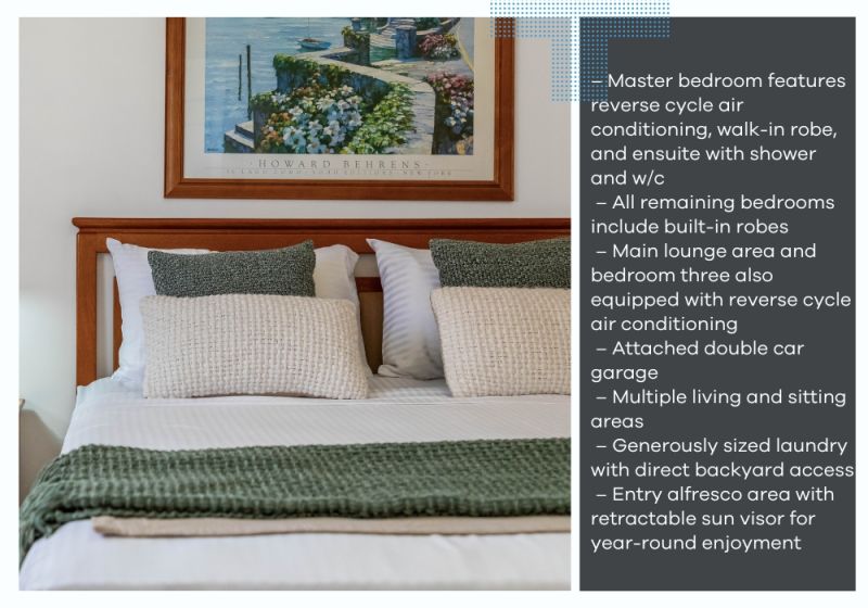 – Master bedroom features reverse cycle air conditioning, walk-in robe, and ensuite with shower and w/c
