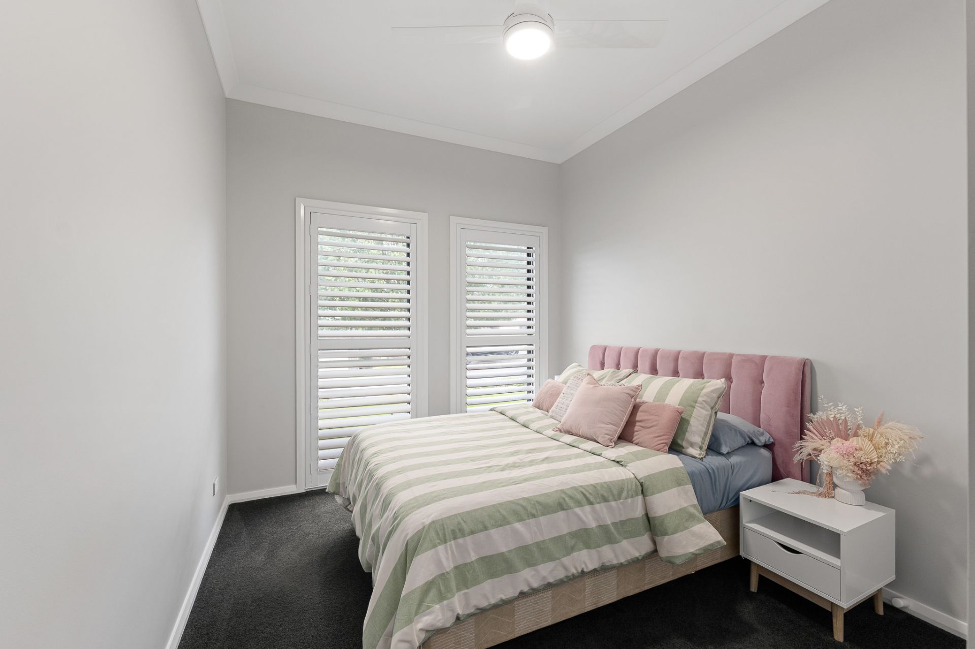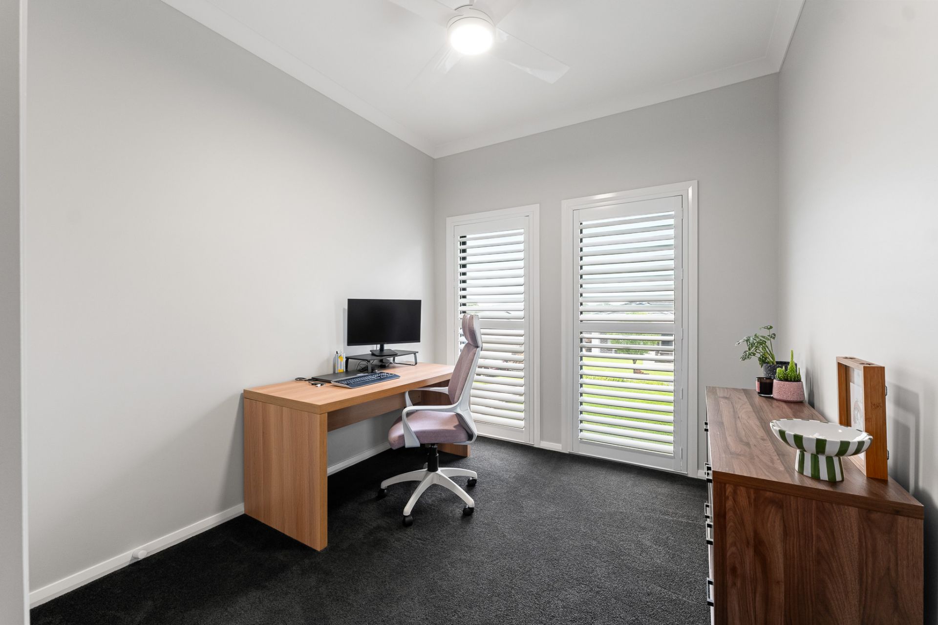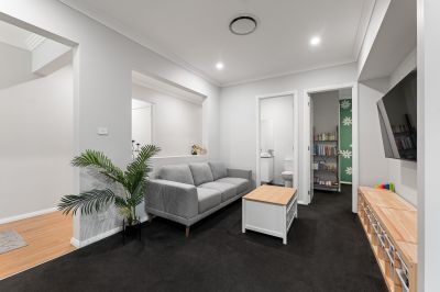Designed with growing families in mind, a dedicated children's wing offers three generously sized bedrooms, enhanced by plantation shutters and built-in robes. This private zone is complemented by a stylish main bathroom featuring a deep bath, a separate powder room, and its own lounge retreat-creating the ideal space for kids to relax and unwind.