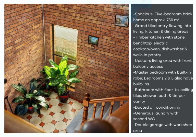 • Five-bedroom brick home set on approximately 756 m²