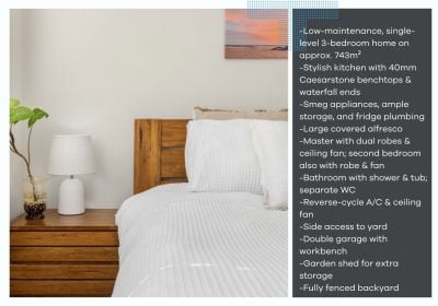 -Single-level, three-bedroom home offering low-maintenance, easy living on approx. 743m²