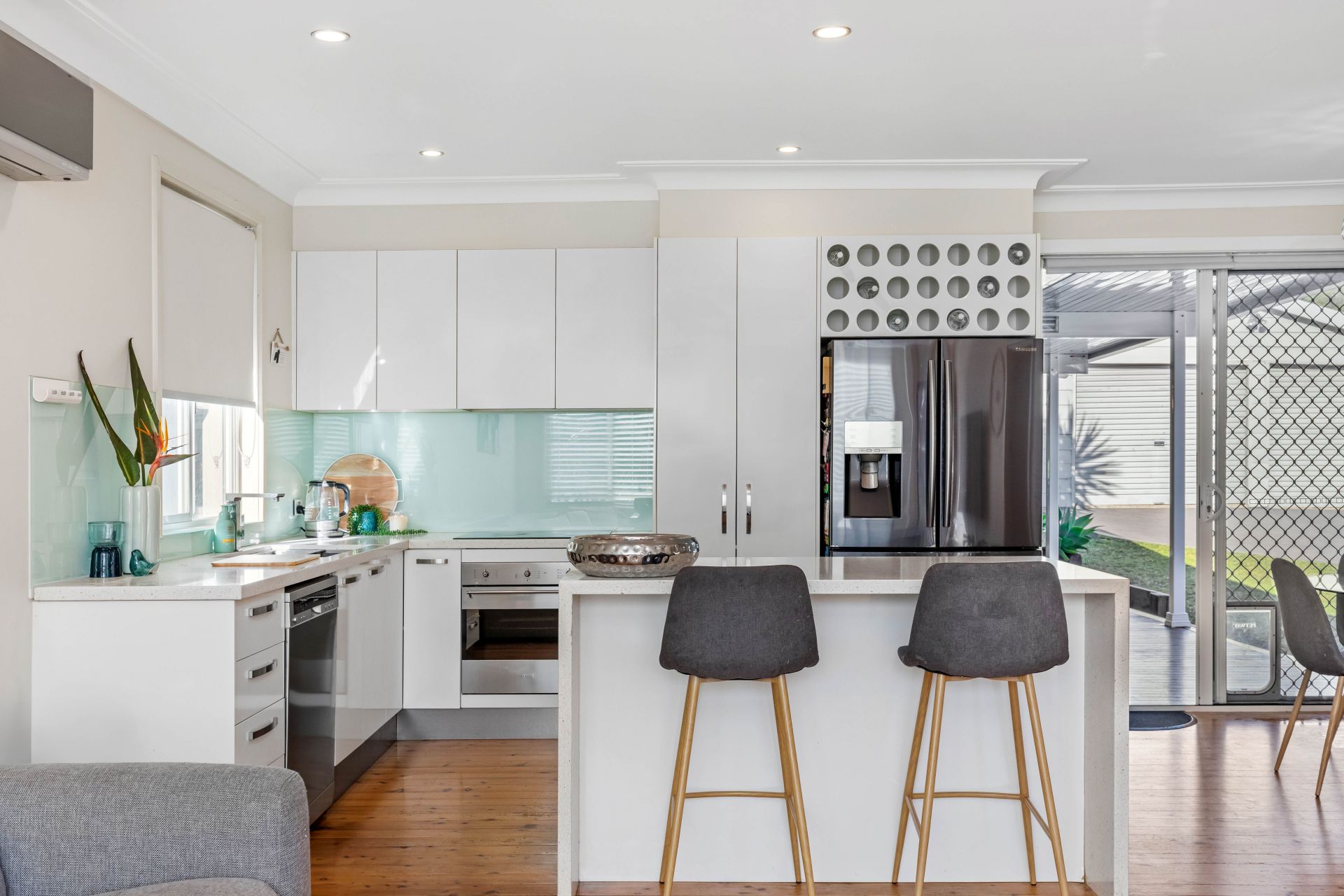 -Smeg induction cooktop, electric oven, dishwasher, ample pantry and bench space, plus plumbing for fridge