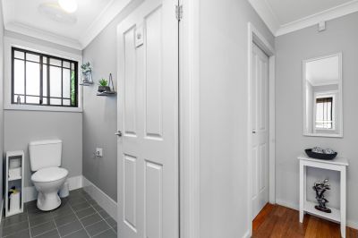 Tucked peacefully at the rear of a small complex of four, this beautifully presented three bedroom villa delivers effortless living with an inviting open-plan design, great natural light and a practical layout that feels instantly welcoming. The spacious living and dining zone sits at the heart of the home, flowing seamlessly to the modern white kitchen complete with ample storage and an easy connection to the private courtyard, ideal for relaxed mornings, entertaining or enjoying a quiet moment outdoors. The generous master bedroom includes a built-in robe, with the remaining bedrooms offering flexibility for guests, children, or a dedicated work-from-home space. A well appointed bathroom, separate WC and internal laundry enhance everyday convenience.
