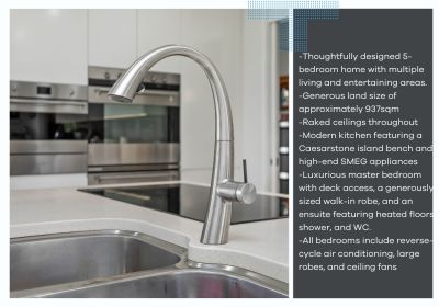 -All bedrooms include reverse-cycle air conditioning, large robes, and ceiling fans.