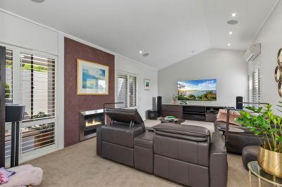 -Formal lounge area with a gas fireplace, reverse-cycle air conditioning