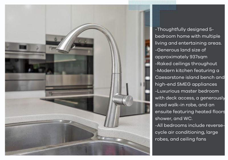 -Thoughtfully designed 5-bedroom home with multiple living and entertaining areas.