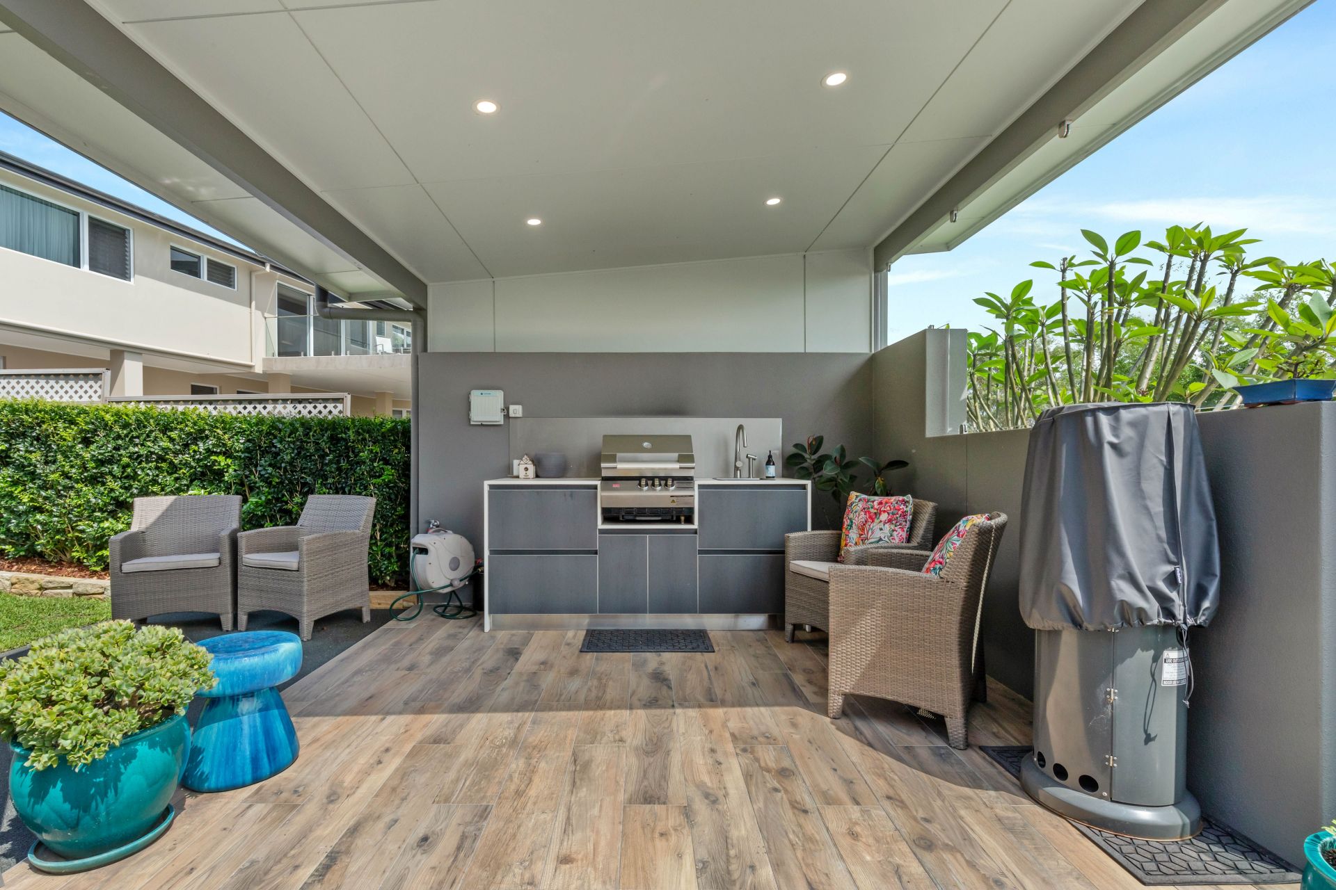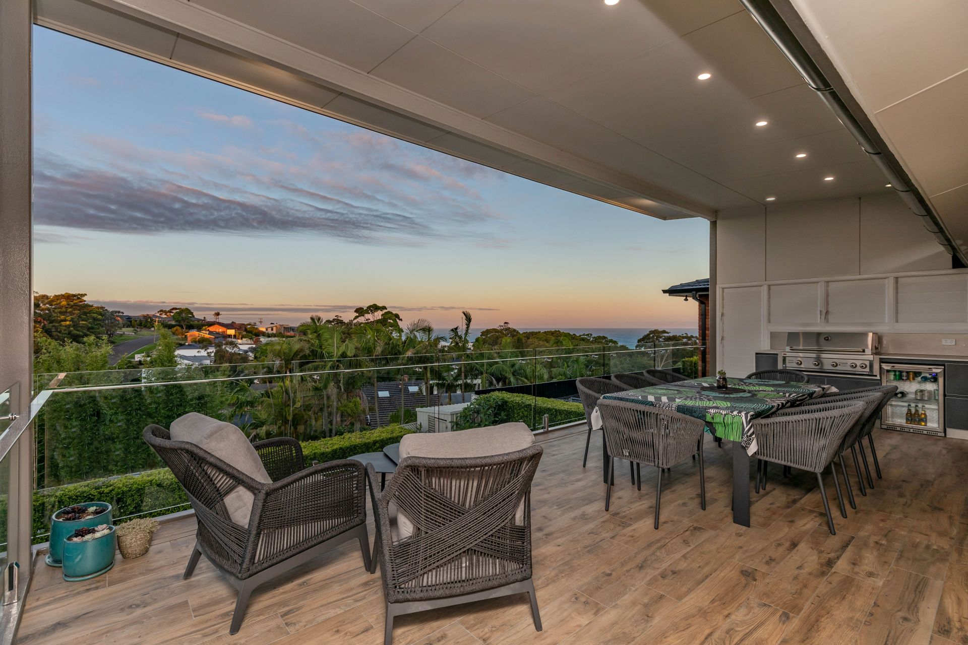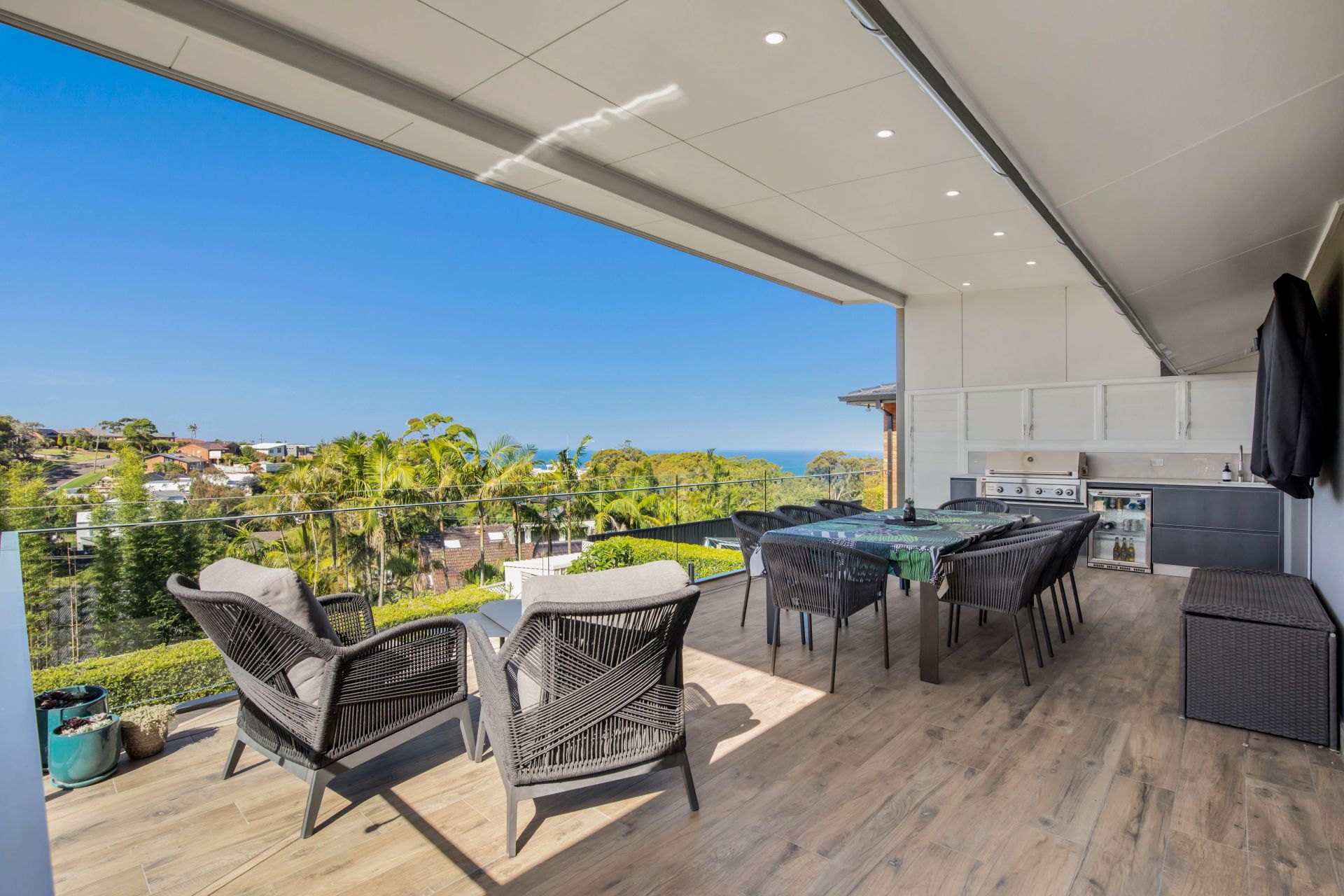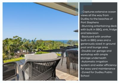 -Expansive back deck with extensive ocean views all the way to the beaches of Port Stephens , complete with a built-in BBQ and television-perfect for entertaining or enjoying the sunrise.