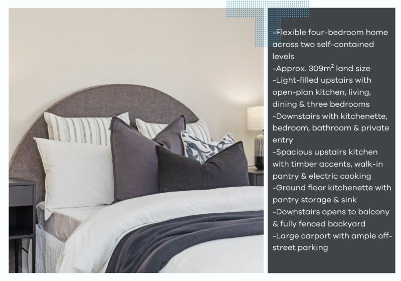 • Thoughtfully designed four-bedroom home with flexible living across two self-contained levels