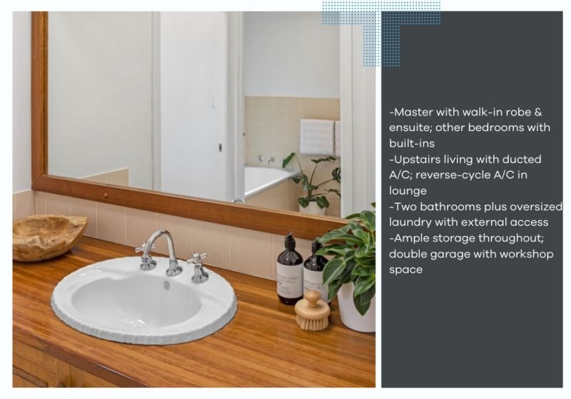 Upstairs, the generous master retreat includes a walk-in robe and ensuite, while three additional bedrooms each feature built-in robes. Three well-appointed bathrooms ensure comfort for the whole family, and the private backyard-with a half basketball court-offers a peaceful alfresco setting and ample room to relax or reimagine. A double garage, under-house storage, and a location just minutes from beaches, golf course, schools, and shopping add to the home's effortless appeal. With quality construction and a coveted position, this is Merewether living at its most relaxed and refined.