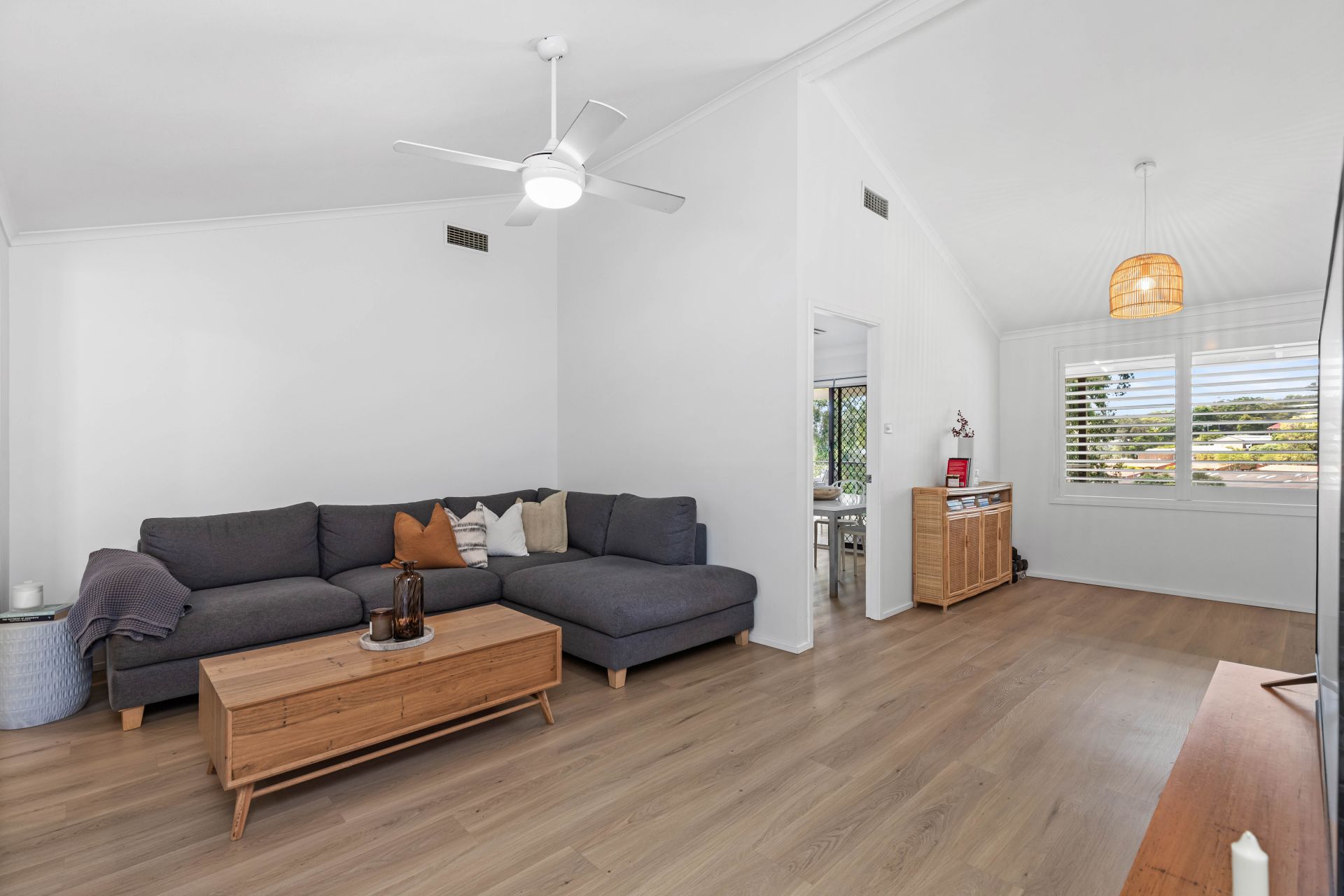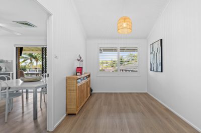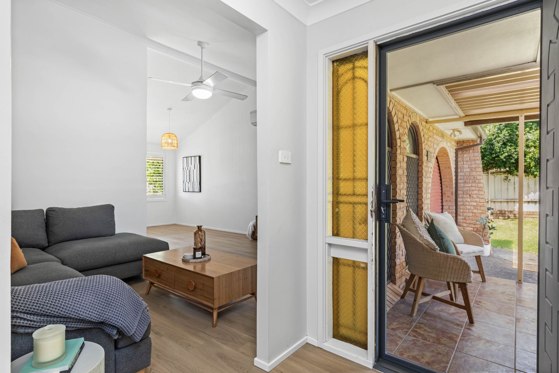 Step outside and the home truly opens up, with sliding doors leading to a substantial covered alfresco deck, elevated to overlook the level, fully fenced backyard—a space designed for long lunches, quiet mornings, and children playing freely below. Three comfortable bedrooms, a neat and functional bathroom, secure garage parking, and a low-maintenance yard ensure immediate comfort while still offering scope to personalise over time. Conveniently positioned close to local schools, shopping centres, beaches, and major transport links, this is a home that balances ease, warmth, and practicality—a place where everyday living feels simple and genuinely enjoyable.