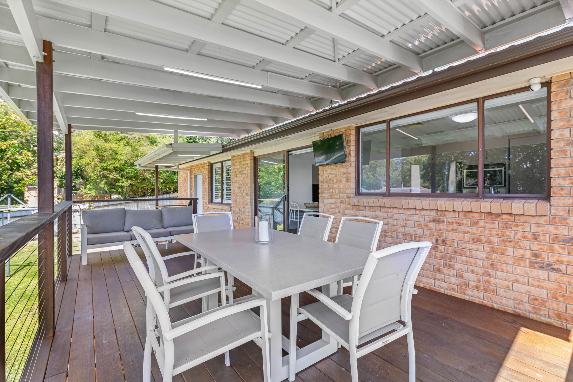 -Spacious, covered alfresco deck elevated above the backyard—ideal for year-round entertaining
