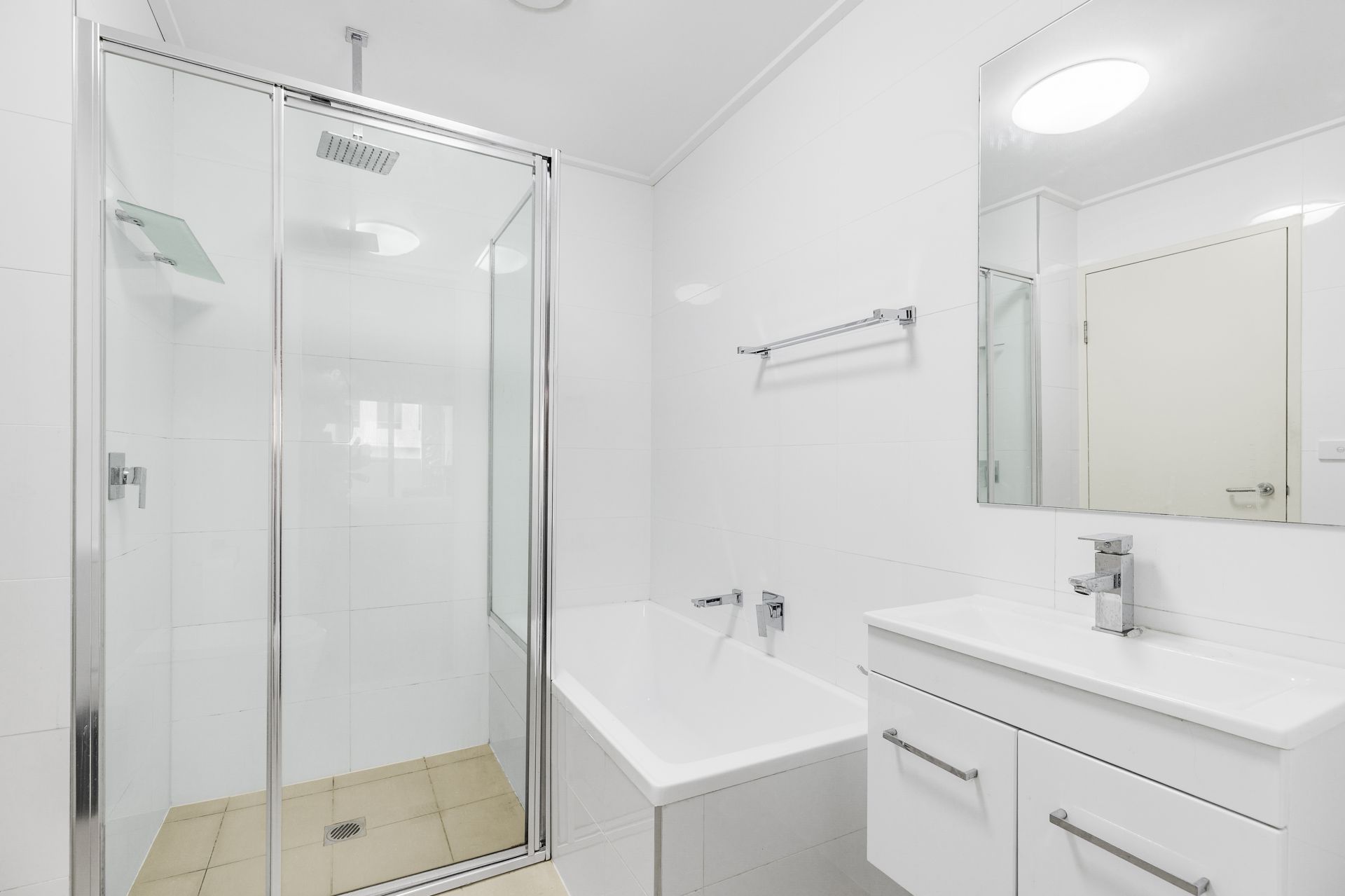 - Floor-to-ceiling tiling in the generously sized two-way bathroom, boasting a shower and bath