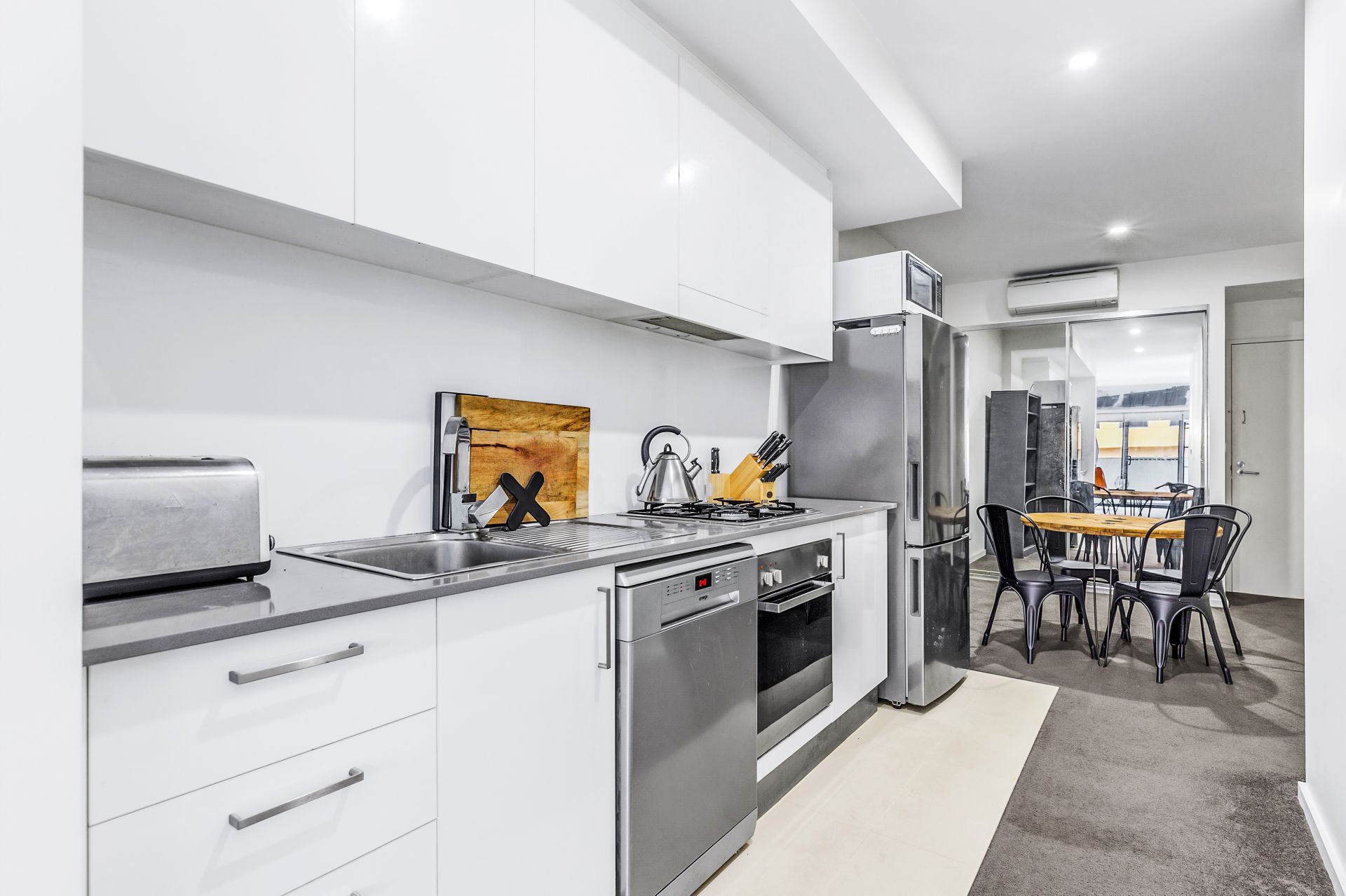 - Modern kitchen with ample pantry space, gas cooktop, electric oven and dishwasher