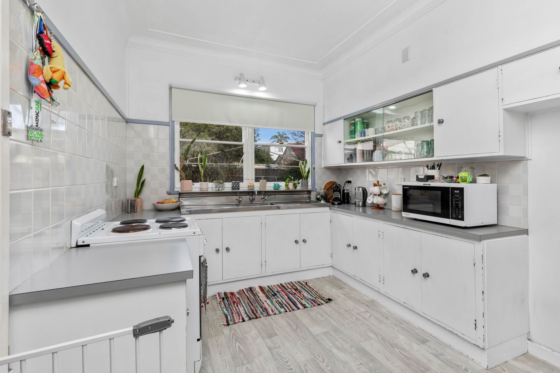 -Generously sized white kitchen with ample bench and pantry space, electric oven and stove
