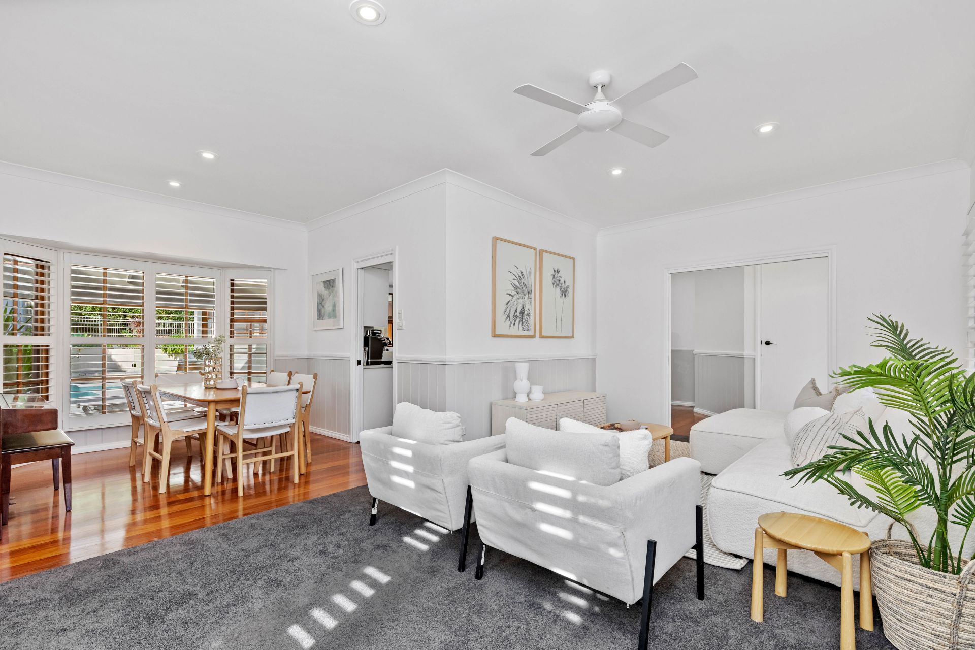 -Formal lounge and dining rooms include a ceiling fan, reverse cycle air conditioning, and overlook the pool