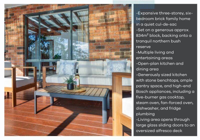 -Set on a generous approx. 834m² block, backing onto a tranquil bush reserve