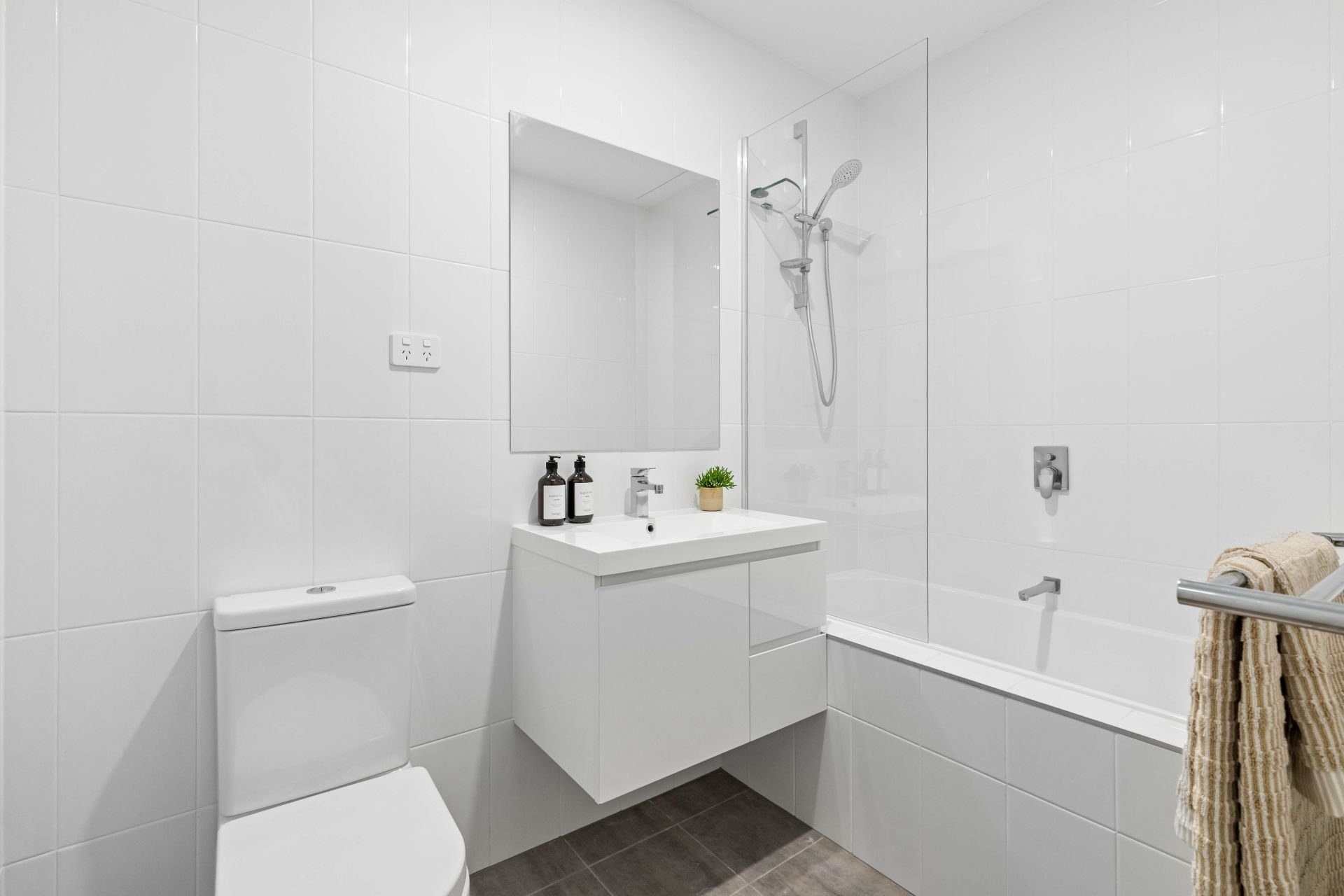 -Stylish main bathroom with shower/bath and WC